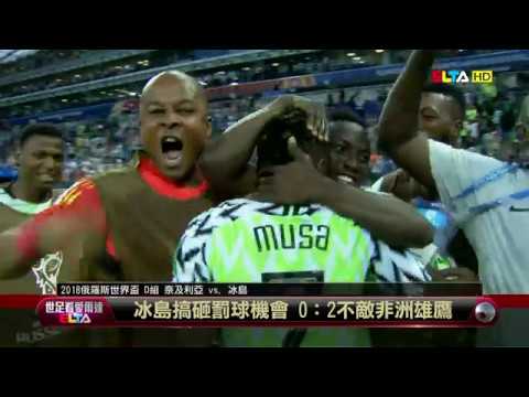 愛爾達電視20180623/穆沙梅開二度 非洲雄鷹2:0融化冰島 - YouTube 世界盃的消息,非洲強權奈及利亞在小組賽第二場迎戰冰島,非洲雄鷹上半場幾乎沒有攻勢,但是經過中場休息以後,下半場砲火超兇猛,跟上半場比起來判若兩隊。// (不管他們嗑了什麼都給我來一點) 他們下半場靠著穆沙(Musa)梅開二度敲開冰島大門,加上冰島在比賽結束前搞砸一次12碼罰球機會,最終就讓奈及利亞以2:0抱回勝利...