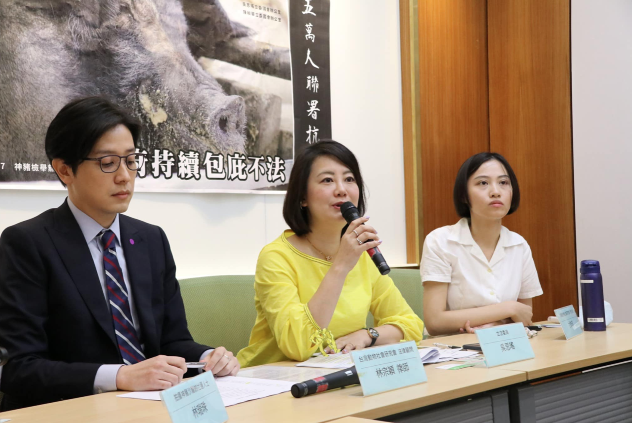 民進黨立委吳思瑤今天為神豬不人道飼養,舉行請命記者會。吳思瑤呼籲,政府應依「動