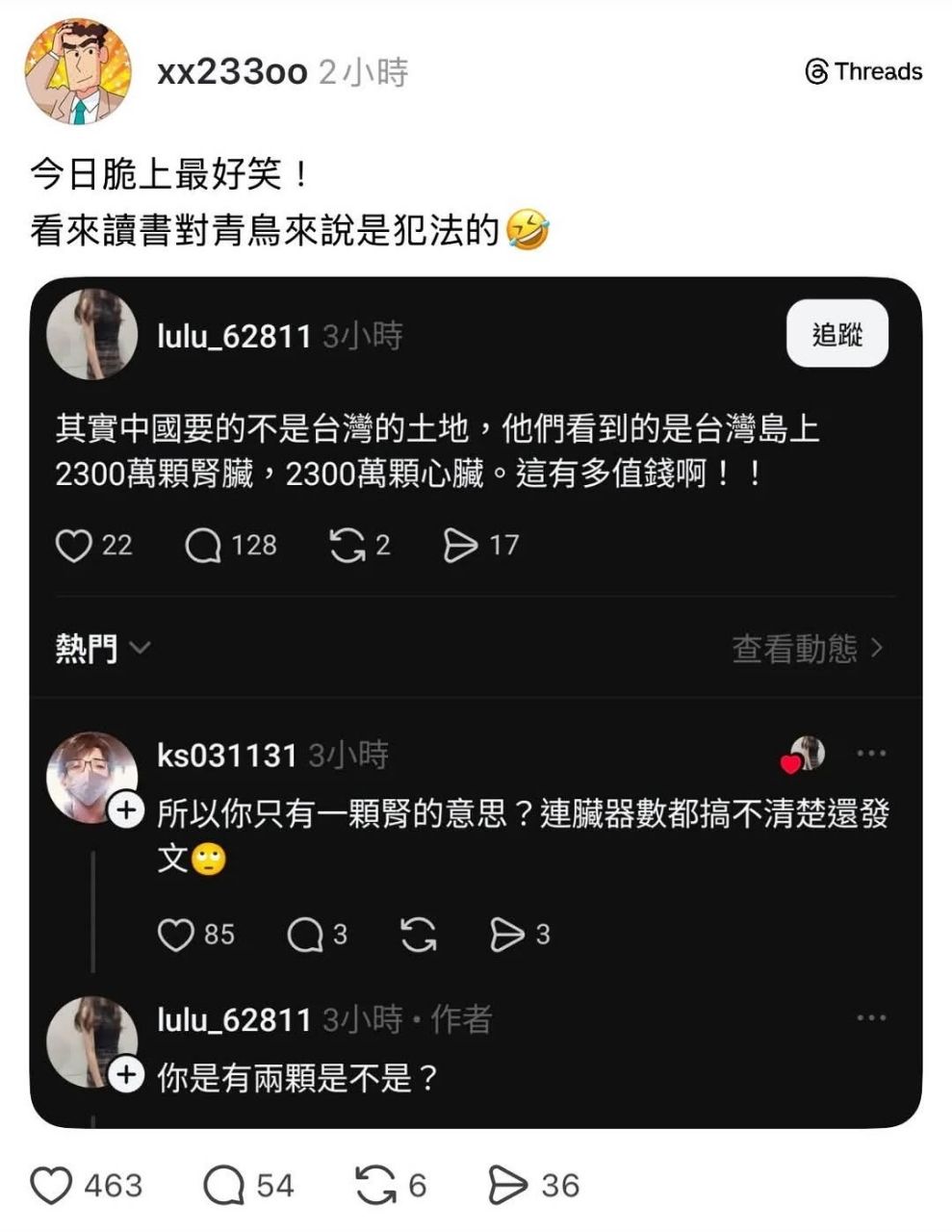 傻鳥跟對岸那些在全世界到處出征的糞青小粉紅真的越來越像了