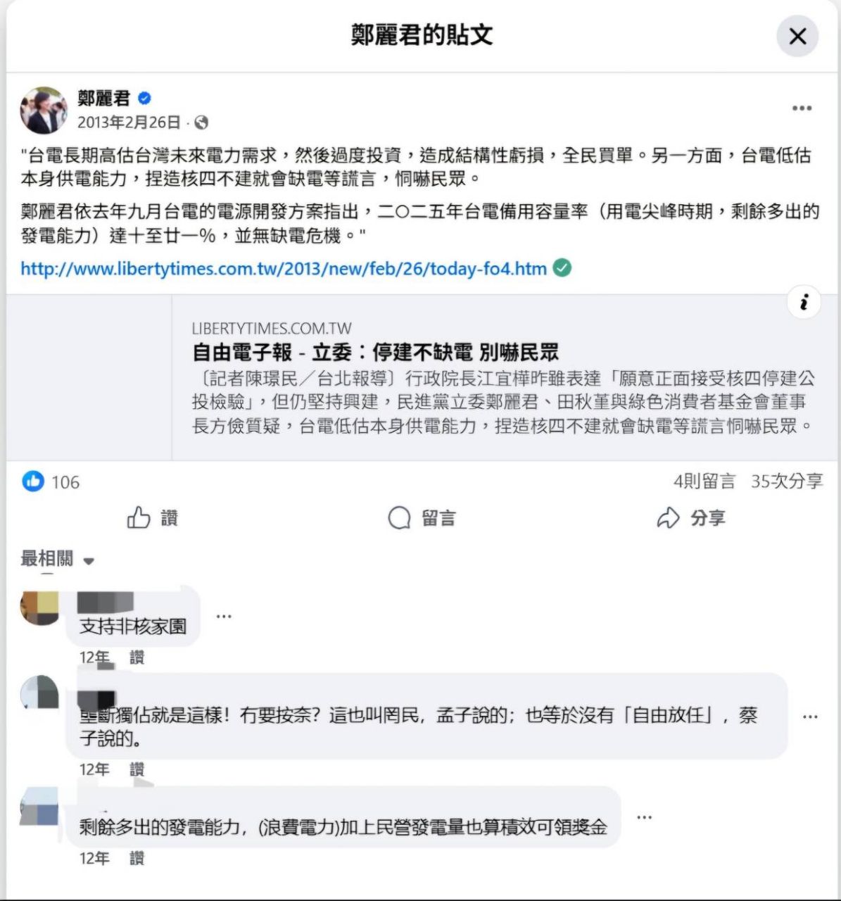 推 : 鄭麗君找到台電藏的電了沒?113F 223.139.88.17 台灣 01/26 13:49