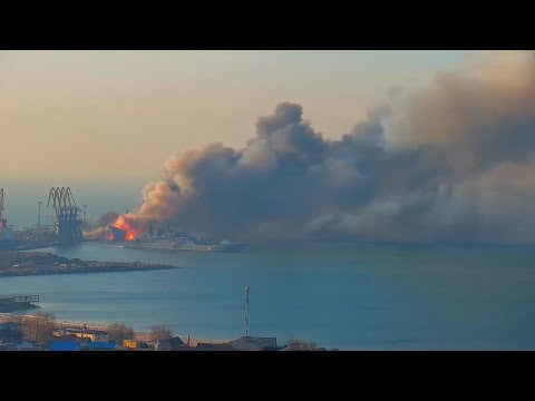 俄羅斯一艘大型船艦被摧毀,在俄羅斯佔領的海港-別爾江斯克(Berdyansk)。根據烏克蘭