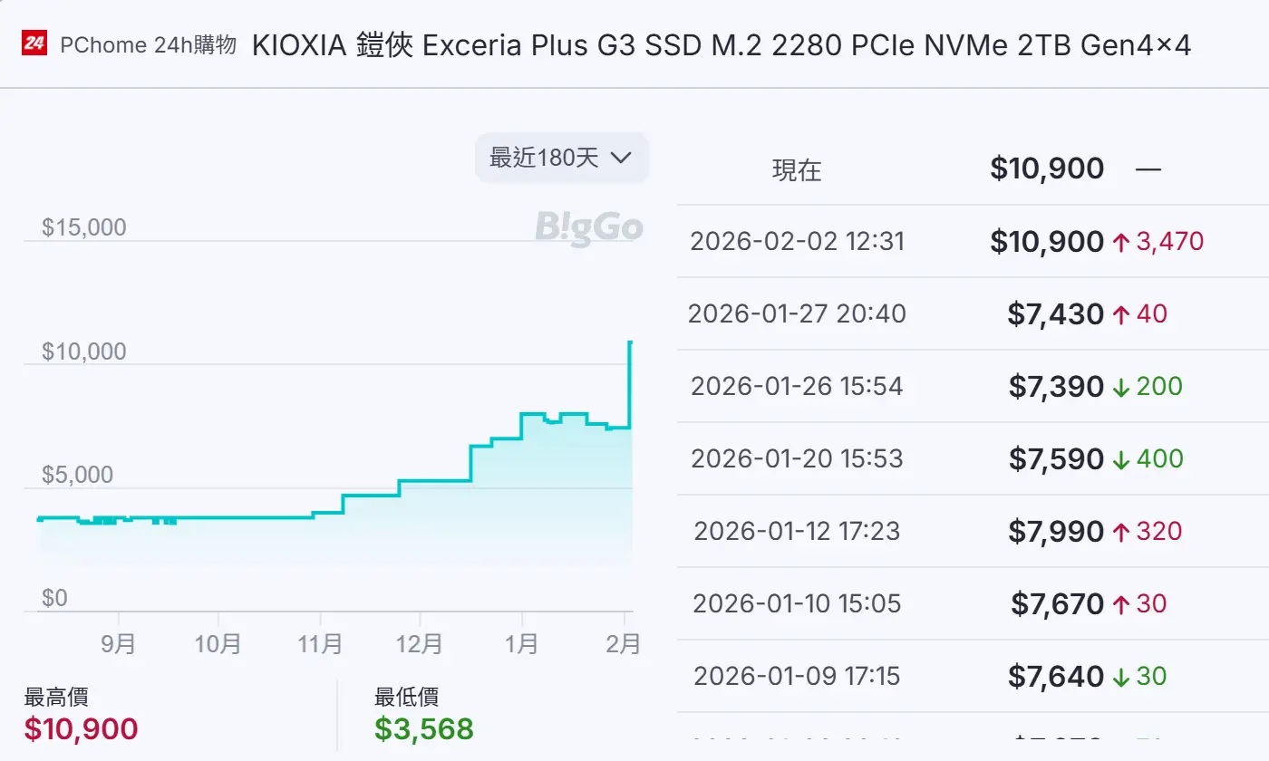 → : 去年11月價格還沒這麼變態,現在1T快破萬