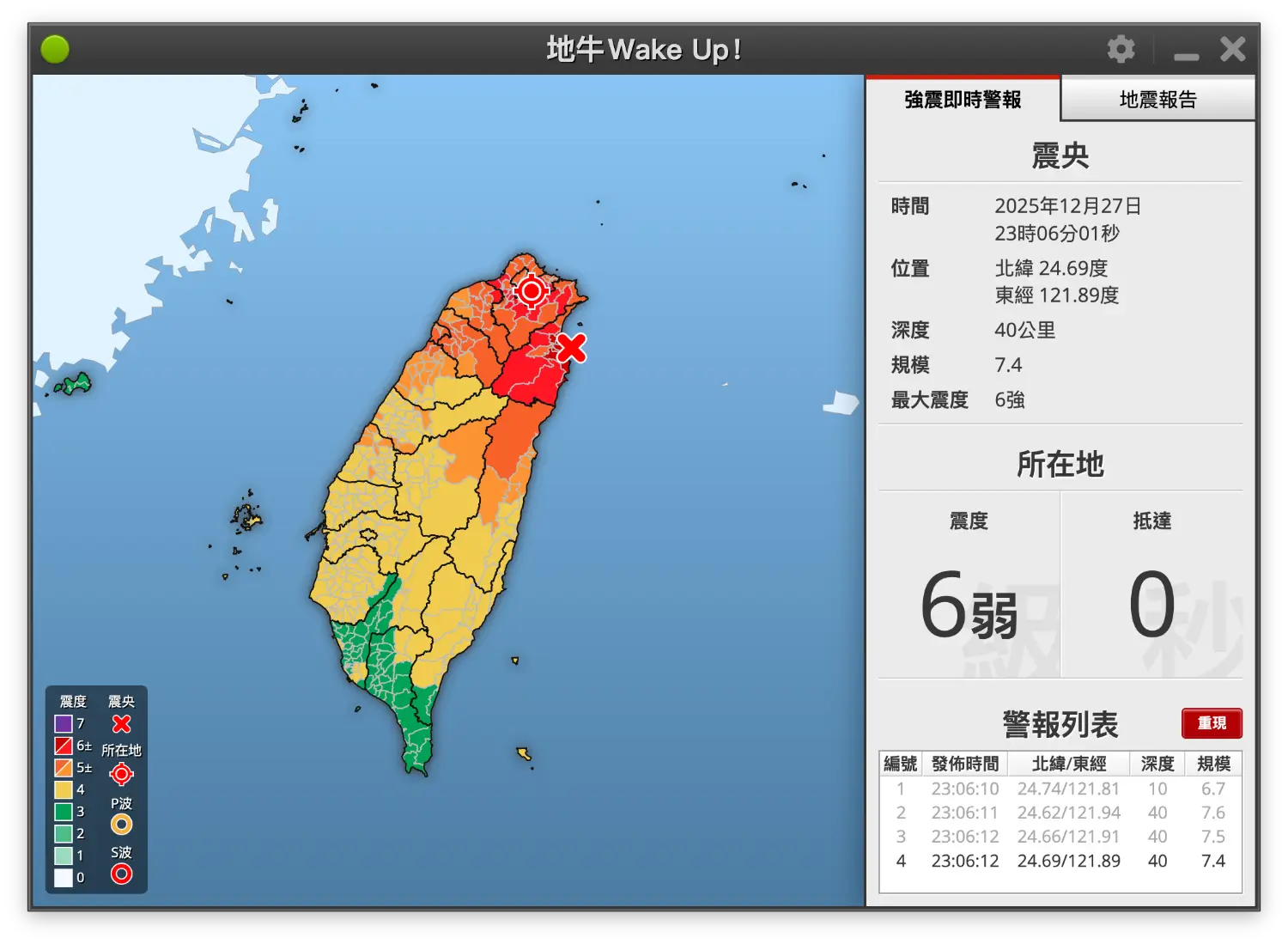 → : 地震快訊後面有修正了,如上圖,震度只有41463F 12/27 23:23