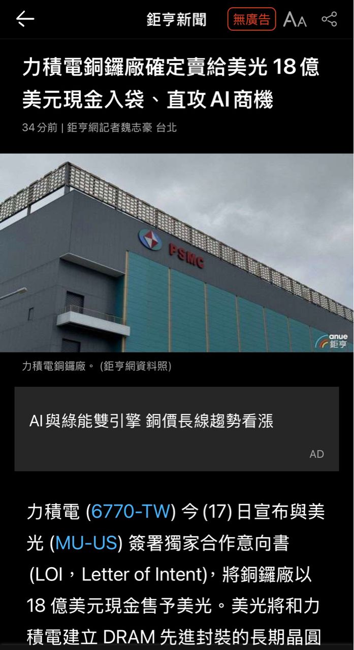 推 : 力積電追漲停嗎?我50gg蛙很羨慕耶!1453F 01/17 22:03