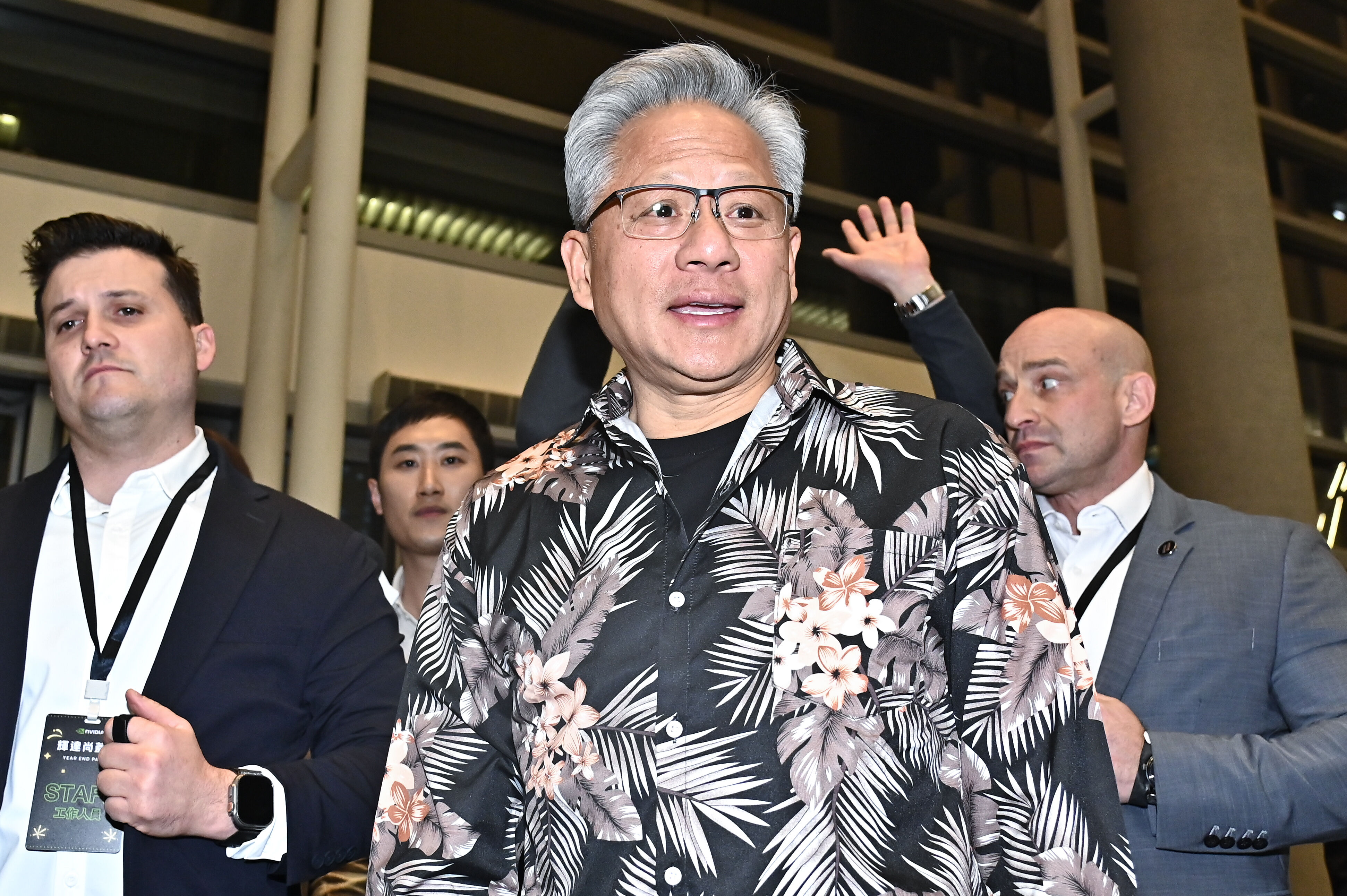 輝達(NVIDIA)執行長黃仁勳今日參與公司尾牙,有別於招牌皮衣,他今天換上了一件黑色花襯衫,在進入會場前,黃仁勳也再次表達對員工過去一年辛勞的感謝,更表示他週末將會和供應鏈夥伴餐敘及會面。