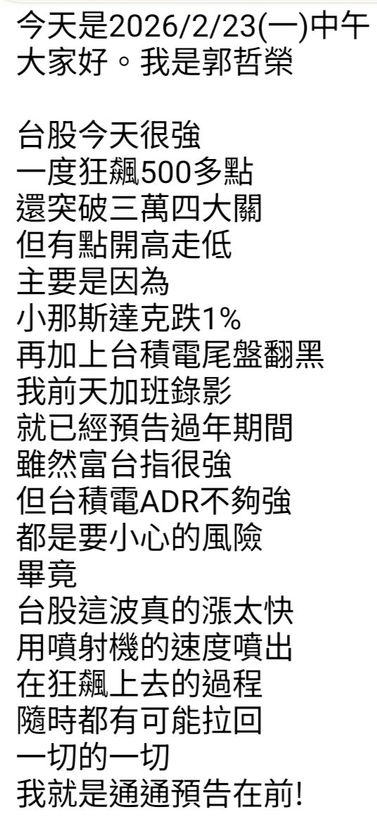 作者 標題 [閒聊] 2026/02/23 盤中閒聊