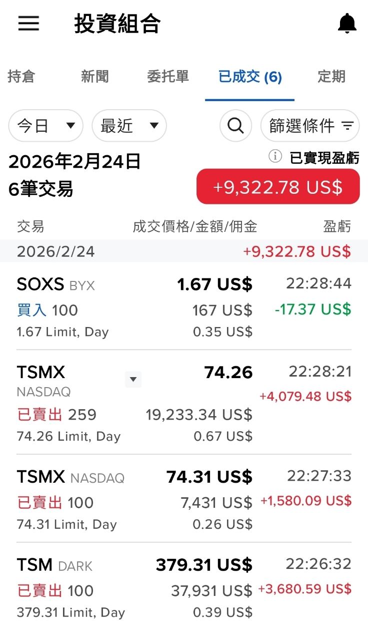 另外手上的美股部位(TSM 和 TSMX)也是差不多時間進場,等等 22:30 美股開盤也會同步
