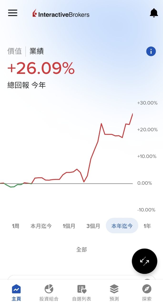 之後的分享會改成貼 IB(盈透證券)的對帳單和今年累積報酬率。