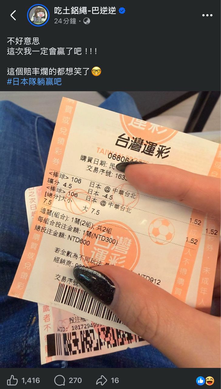 推 : 今天日本獨贏中華賠率1.02是殺小,壓一百萬才賺二萬42F 03/06 14:03