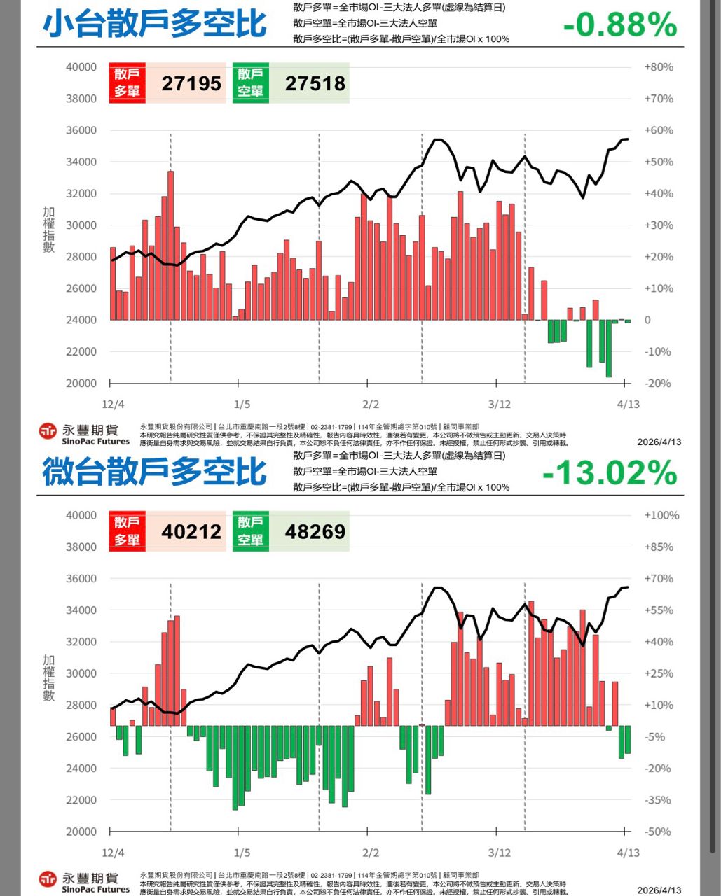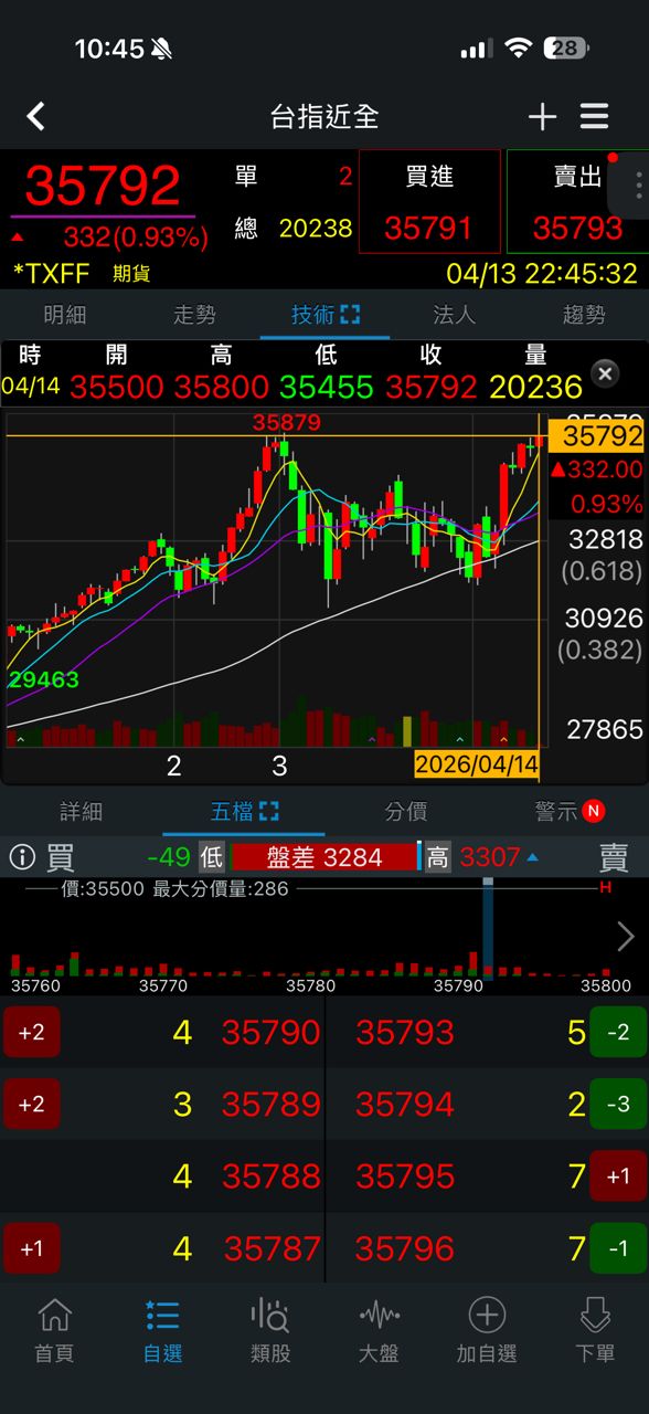 台指04 35457 ▼112 (-0.31%) 49,902口