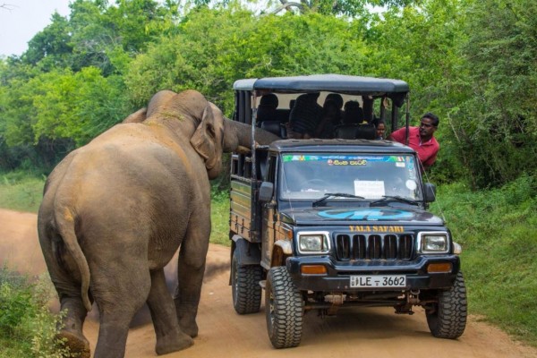 綜合外媒報導,斯里蘭卡的雅拉國家公園日前出現驚險畫面,一輛滿載遊客的公園遊覽車