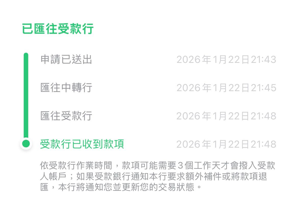 作者 Liroy (優白白)標題 Re: [心得] 電匯的效率時間 Tue Jan 27 14:38:45 2026