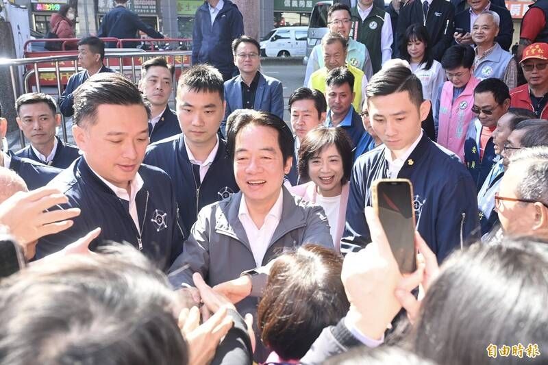 賴清德台中參香,民眾熱情包圍喊我愛你。(記者廖耀東攝)
