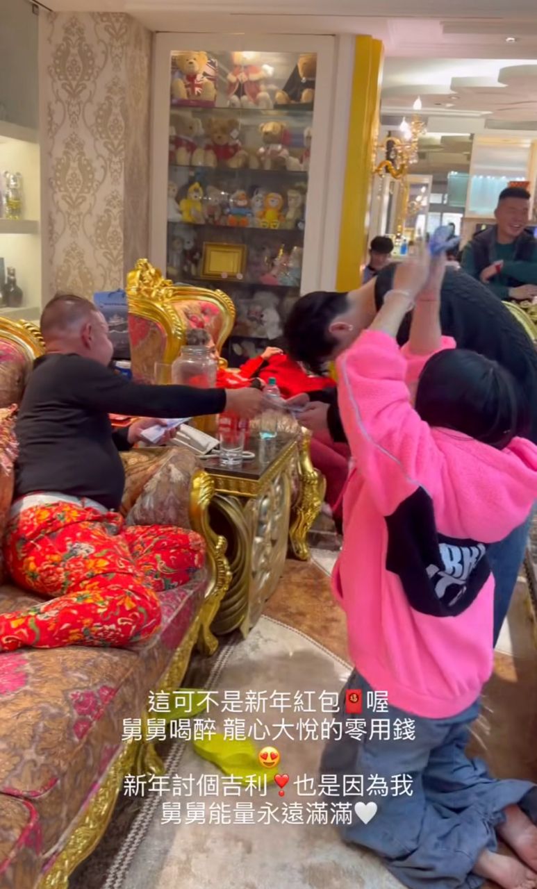 千的發,女生大喊謝謝舅舅!又多發一千,女生還跪下喊謝謝舅舅!又多了幾張。