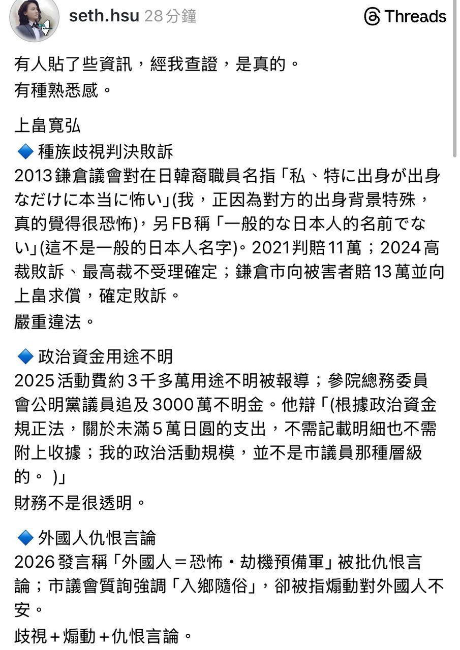 [問卦] 日本神戶議員上畠寬弘被翻出各種黑歷史
