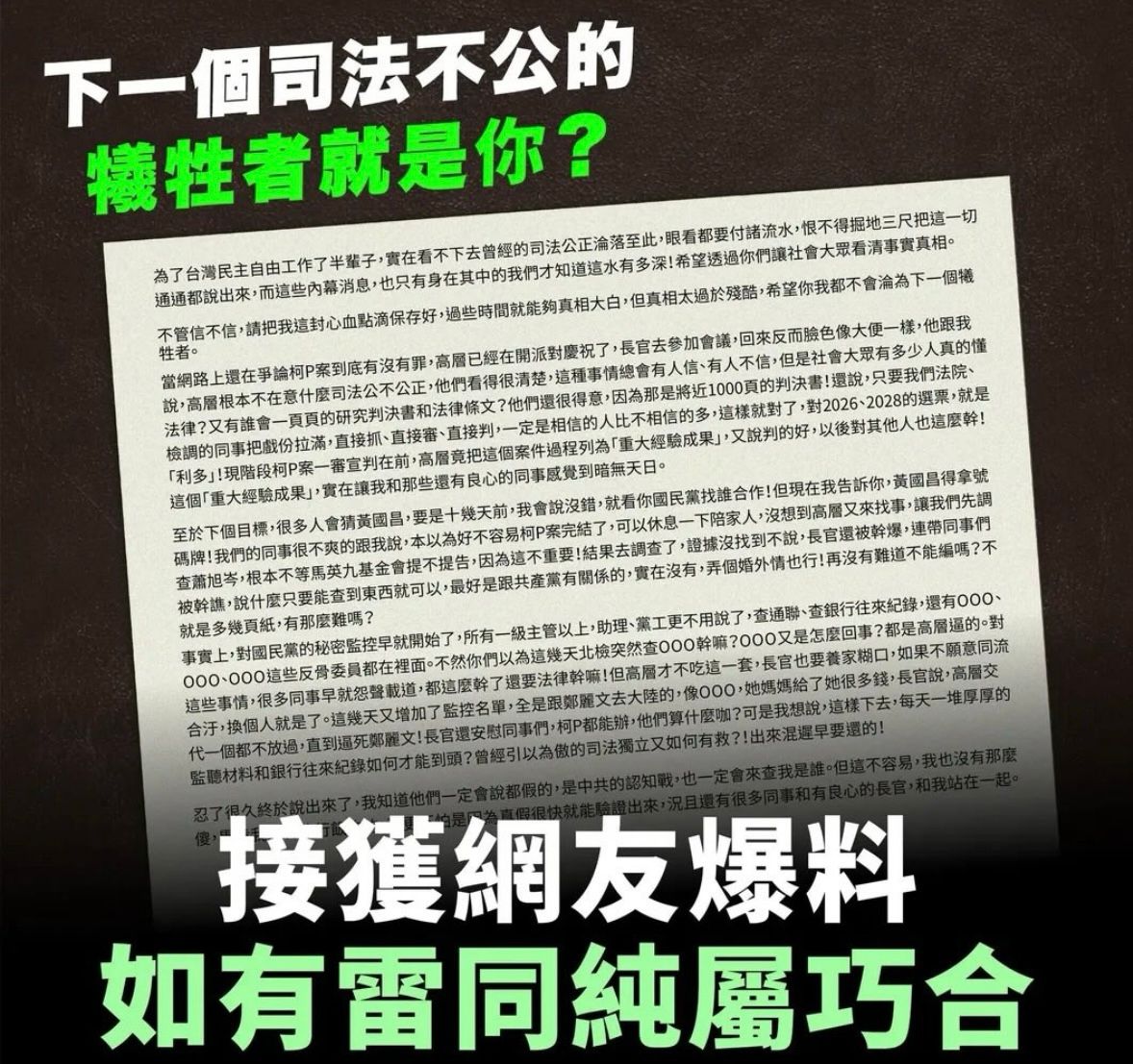 們法院、檢調的同事把戲份拉滿,直接抓、直接審、直接判,一定是相信的人比不相信的