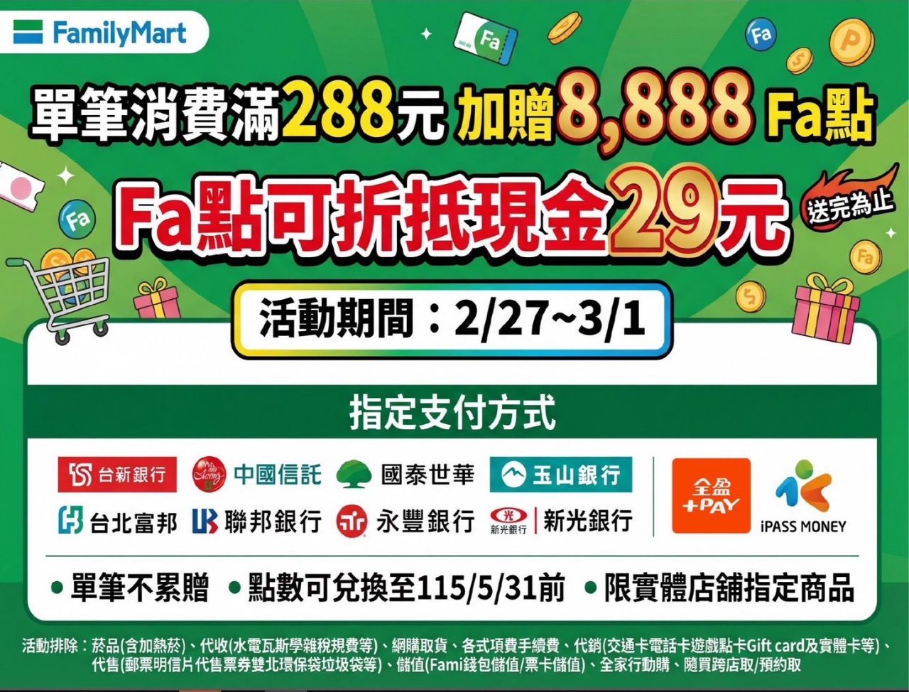 [情報] 玉山信用卡 單筆滿288元贈8888點全家Fa點 - creditcard 板