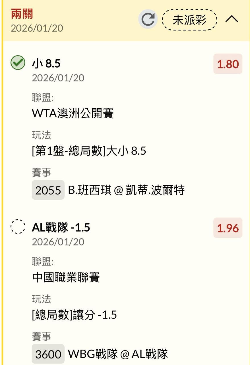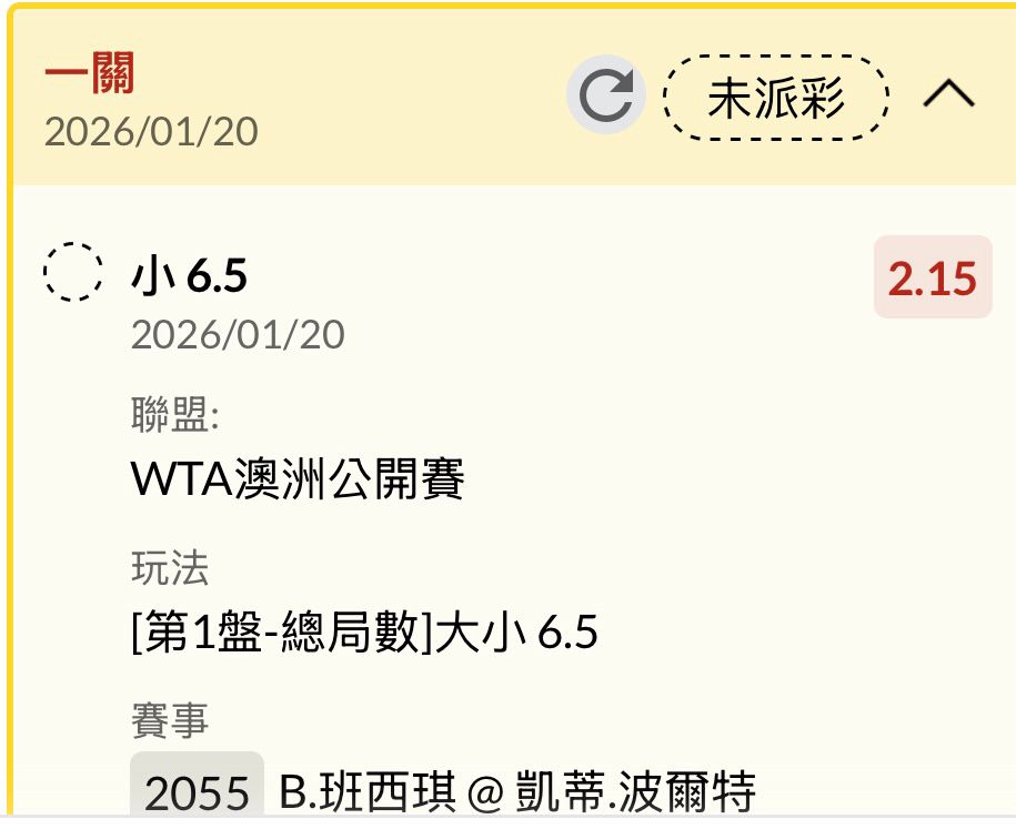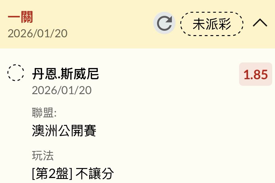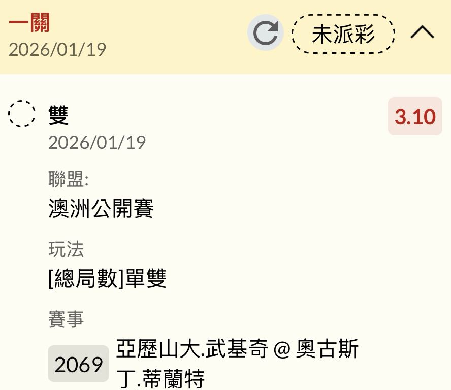 2026-01-19 10:41:50 推 sulaeric: 澳網好多盤好買 可惜要串關 196F 101.12.101.201 01-19 11:30